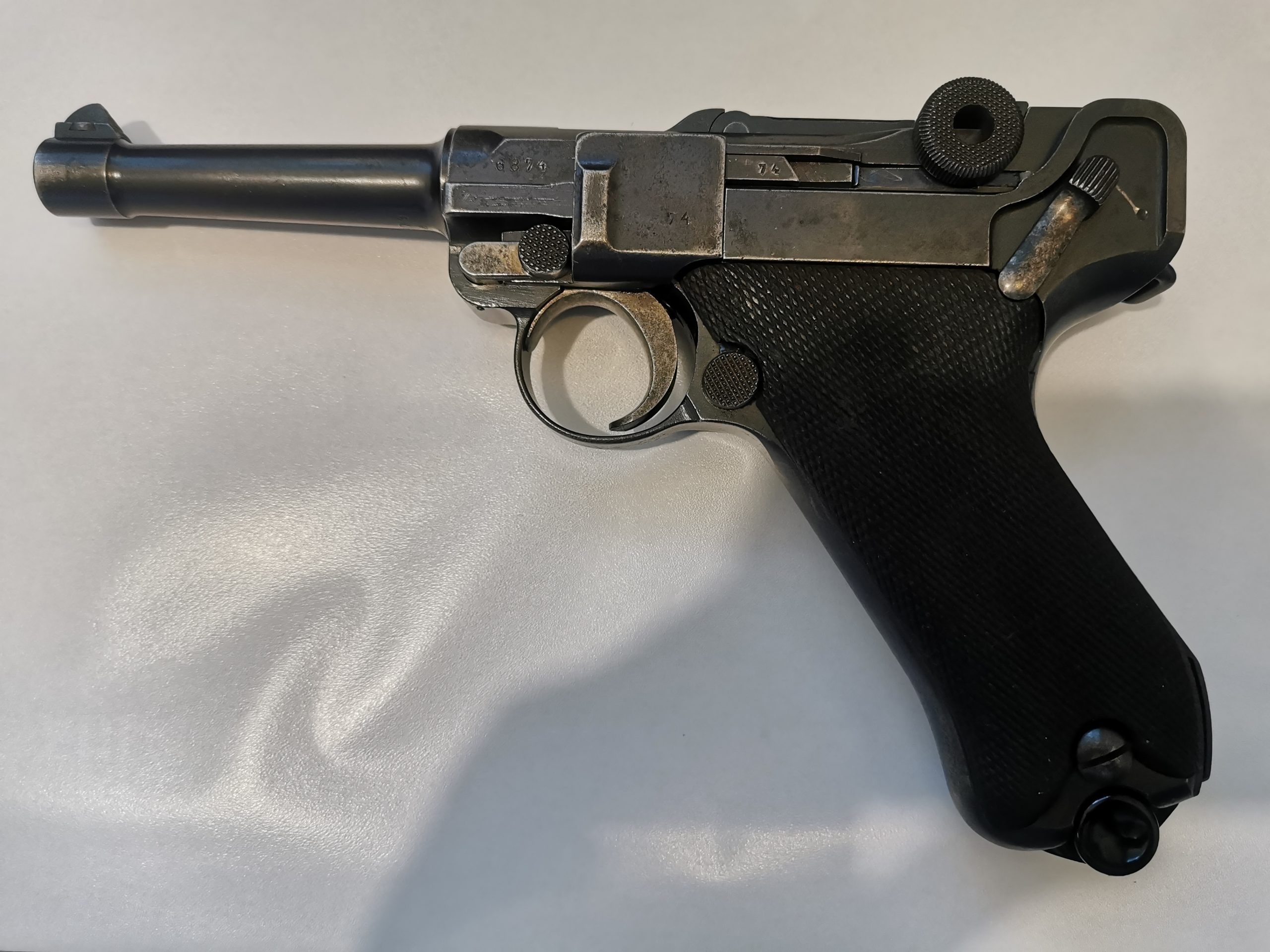 Pistolet samopowtarzalny p08, produkcja DWM, rocznik 1915. Obecne odbiory wojskowe (https://www.germandaggers.com/Gallery/GLP.php). Bardzo atrakcyjny egzemplarz, gwint wyraźny, lufa matowa w polach.